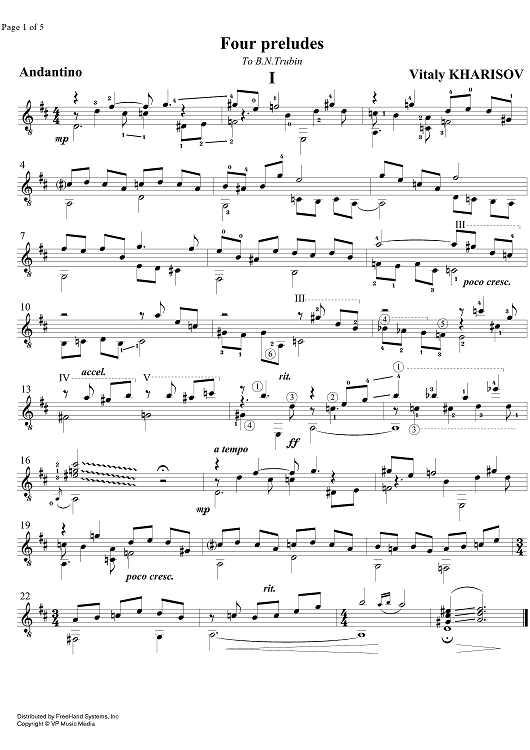 Digital Sheet Music for 4 Preludes by , Vitaly Kharisov scored for Guitar; id:326604