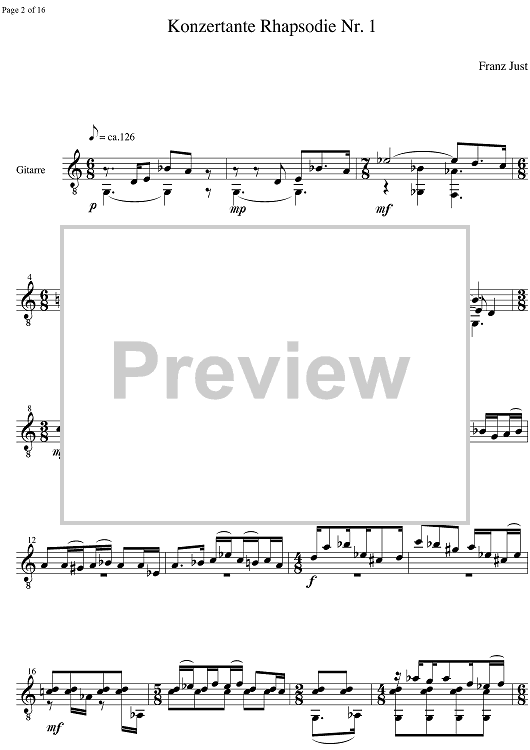 Digital Sheet Music for 5 konzertante Rhapsodien by Franz Just scored for Guitar; id:353853