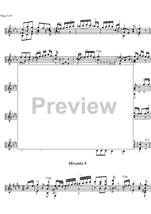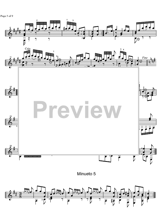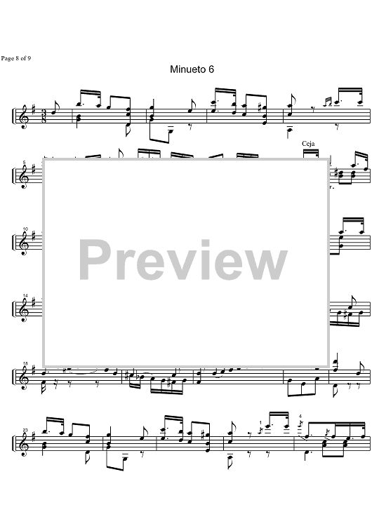 Digital Sheet Music for 6 Minuets by Dionisio Aguado scored for Guitar; id:325887