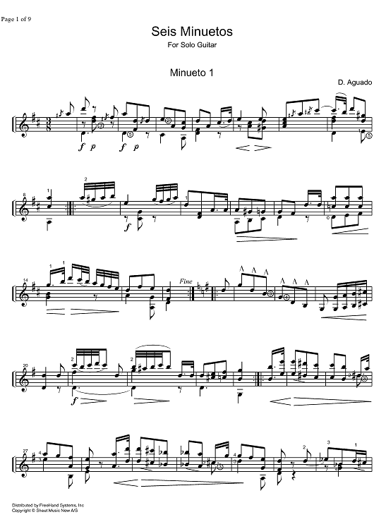 "6 Minuets" Sheet Music by Dionisio Aguado