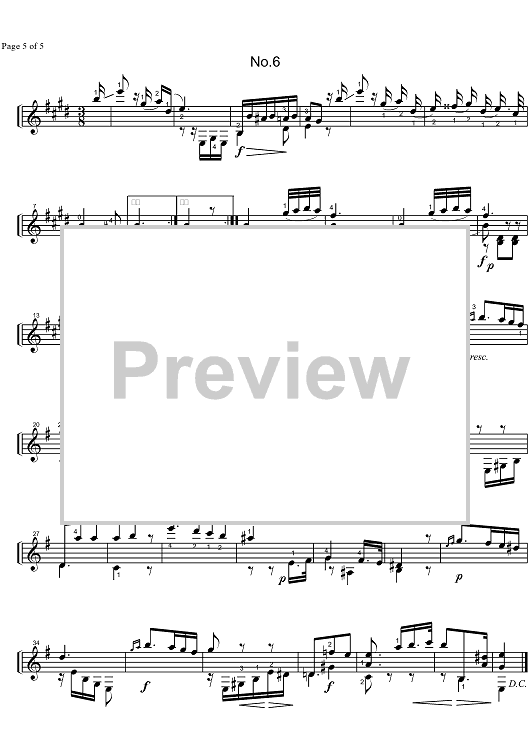 Digital Sheet Music for 6 Valses by Dionisio Aguado scored for Guitar; id:322516
