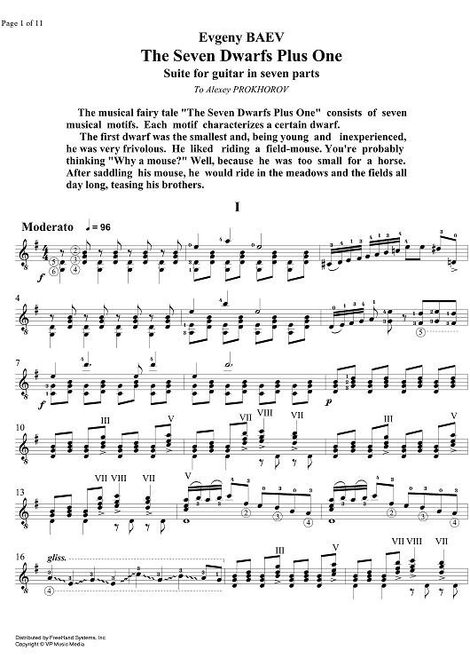 Digital Sheet Music for 7 Dwarfs plus 1 by , Evgeny Baev scored for Guitar; id:328870