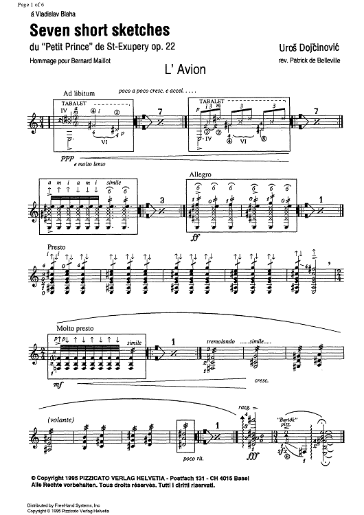 Digital Sheet Music for 7 Short Sketches from Little Prince by , Uros Dojcinovic scored for Guitar; id:329765