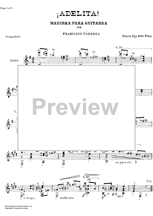 Digital Sheet Music for Adelita by F. Tarrega scored for Guitar; id:327622
