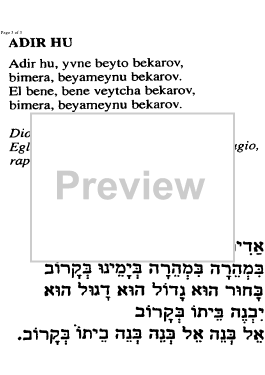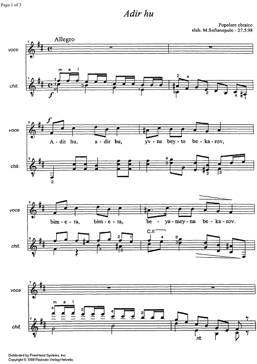 Digital Sheet Music for Adir Hu by , Marco Sofianopulo, Traditional scored for Voice/Guitar; id:326524