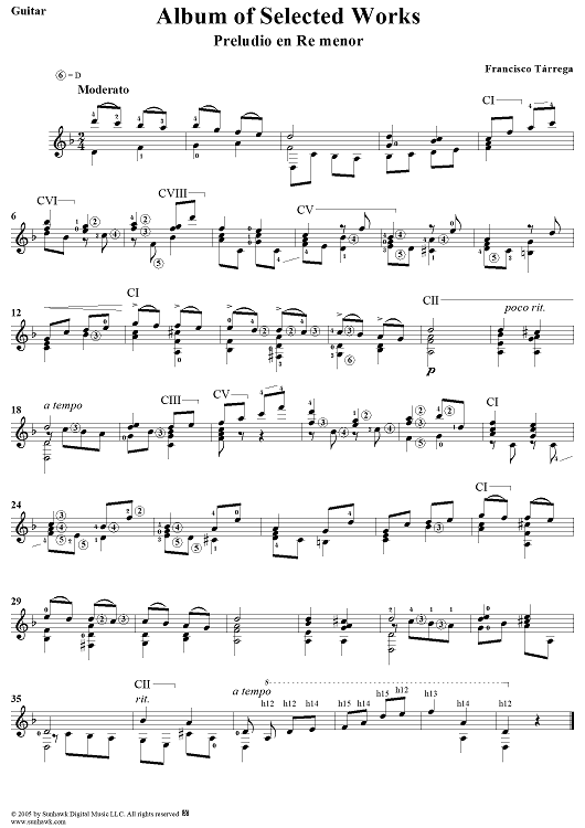Digital Sheet Music for Album Of Selected Works by F. Tarrega scored for Guitar Solo; id:312108