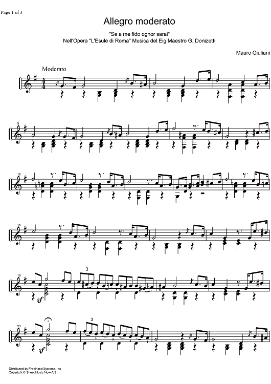 "Allegro Moderato" Sheet Music by Mauro Giuliani