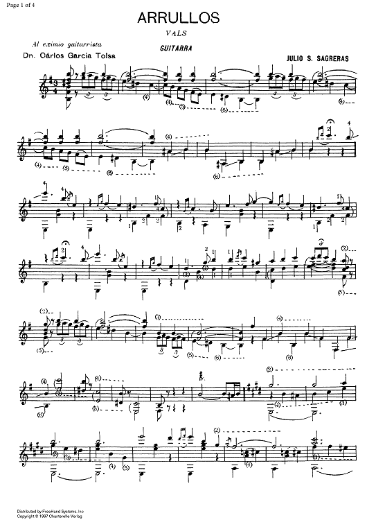 Digital Sheet Music for Arrullos by , Julio Sagreras scored for Guitar; id:327132
