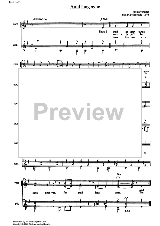 Digital Sheet Music for Auld Lang Syne by Marco Sofianopulo, Traditional scored for 2 Voices/Guitar; id:329342