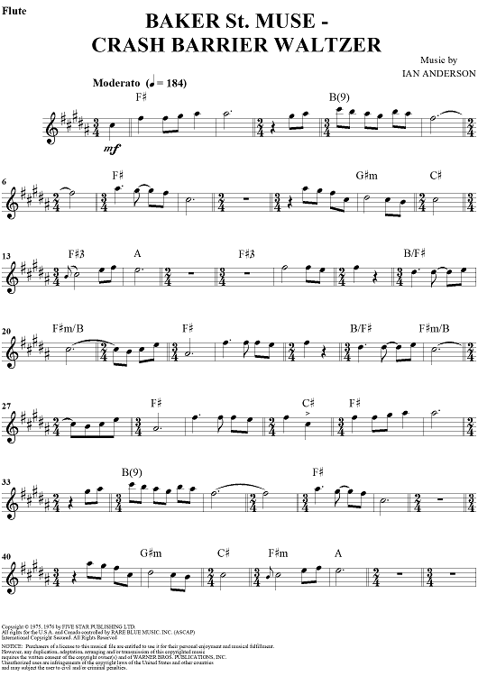 Digital Sheet Music for Baker St. Muse - Crash Barrier Waltzer by Ian Anderson, Jeff Rona, Jethro Tull scored for Flute/Guitar; id:277711