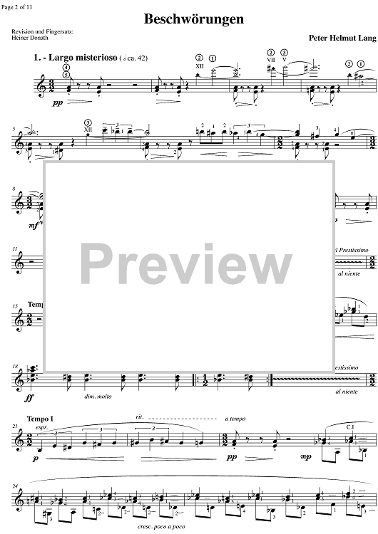 Digital Sheet Music for Beschwörungen by Peter Helmut Lang scored for Guitar; id:353852
