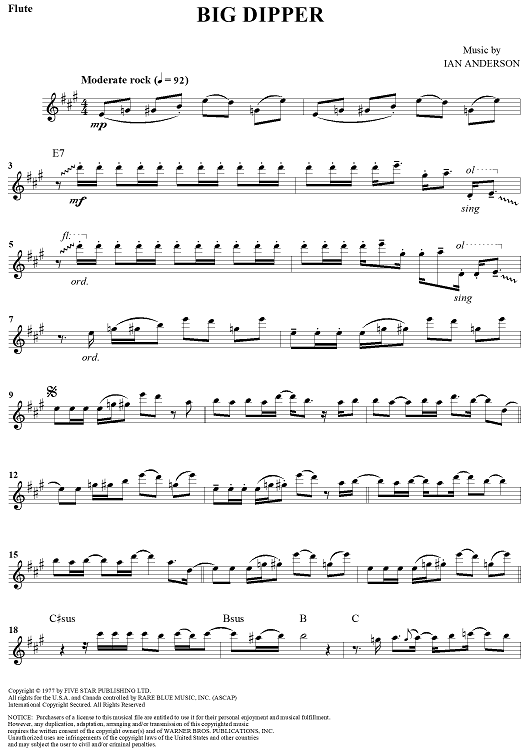 Digital Sheet Music for Big Dipper by Ian Anderson, Jeff Rona, Jethro Tull scored for Flute/Guitar; id:277674