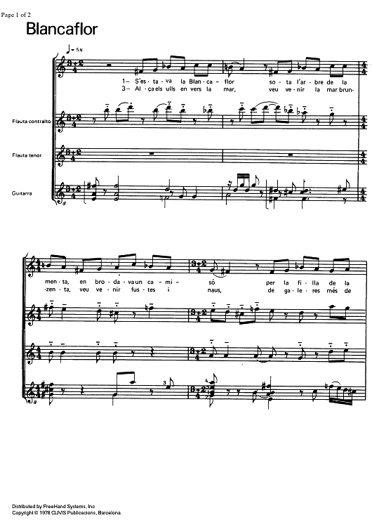 Digital Sheet Music for Blancaflor by , Bernat Rövenstrunk scored for Voice/2 Recorders/Guitar; id:349124