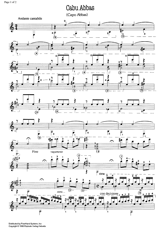 Digital Sheet Music for Cabu Abbas by Giuliano Manzi scored for Guitar; id:335336