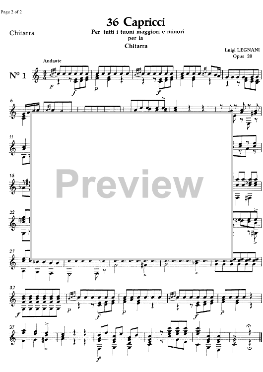 Digital Sheet Music for Caprice No. 1 by Luigi Legnani scored for Guitar; id:327671