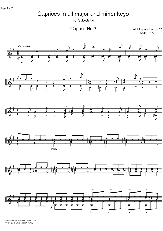 Digital Sheet Music for Caprice No. 3 by Luigi Legnani scored for Guitar; id:328000