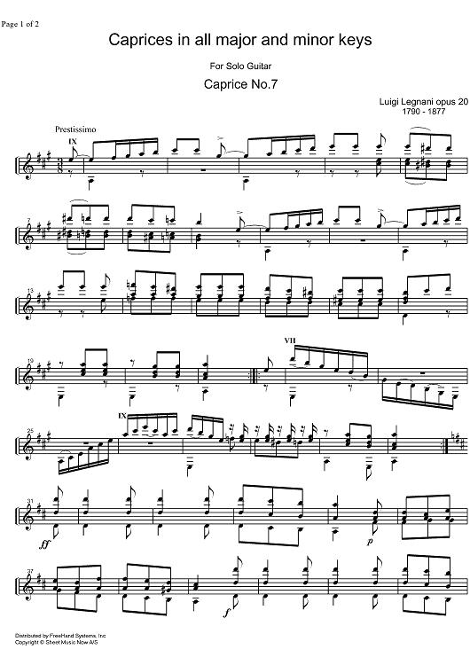 Digital Sheet Music for Caprice No. 7 by Luigi Legnani scored for Guitar; id:328004