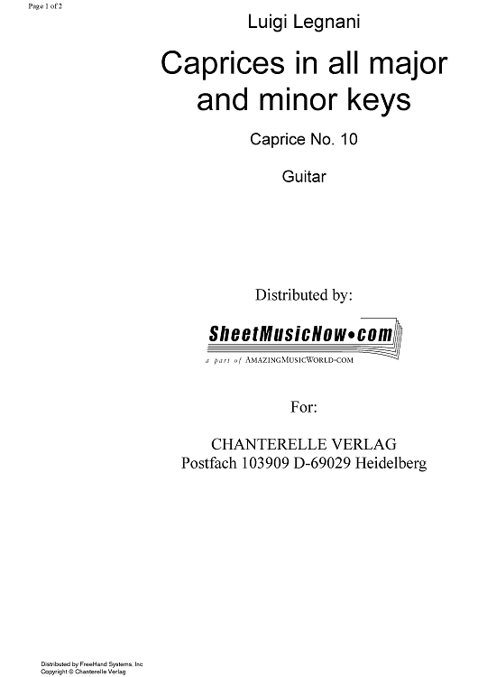 Digital Sheet Music for Caprice No.10 by Luigi Legnani scored for Guitar; id:327680