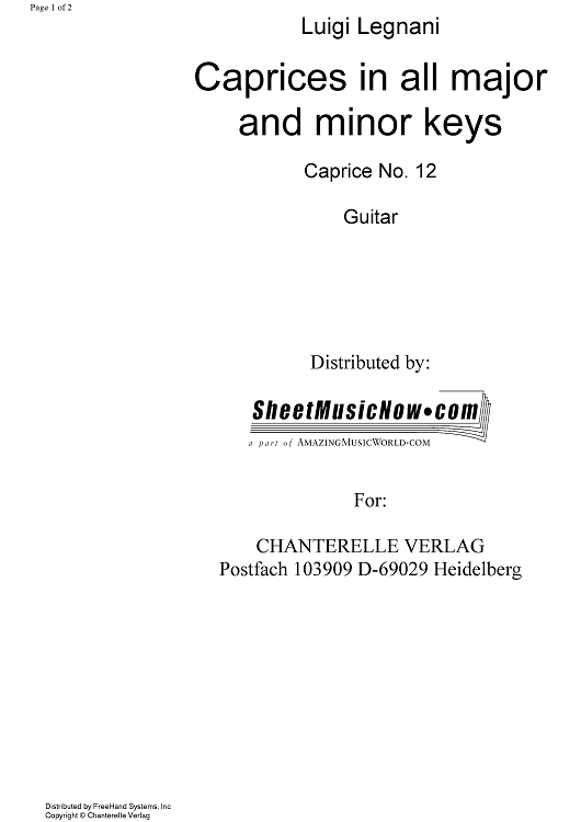 Digital Sheet Music for Caprice No.12 by Luigi Legnani scored for Guitar; id:327681