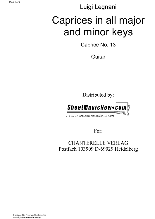 Digital Sheet Music for Caprice No.13 by Luigi Legnani scored for Guitar; id:327682