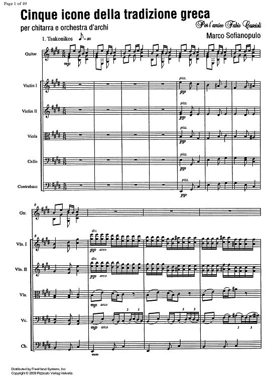 Digital Sheet Music for Cinque icone della tradizione greca (Five icons of the greek tradition) by , Marco Sofianopulo scored for Guitar/String Ensemble; id:351793
