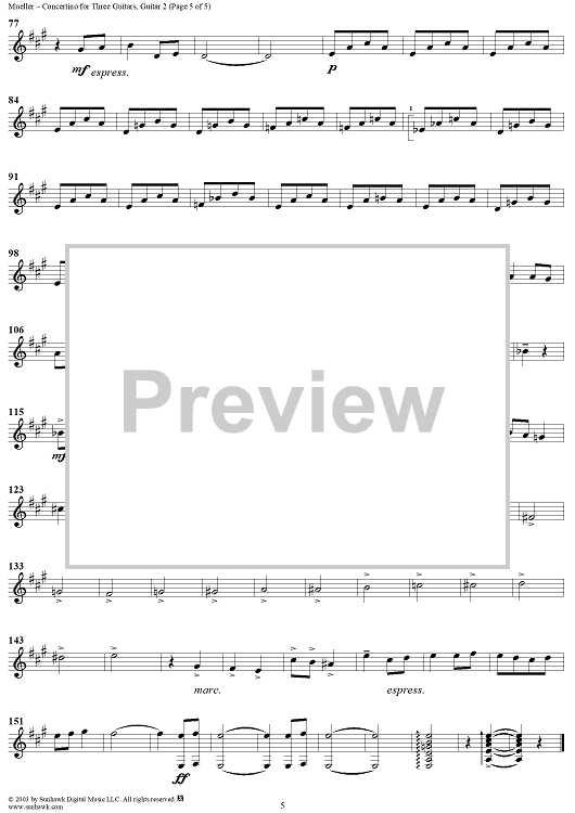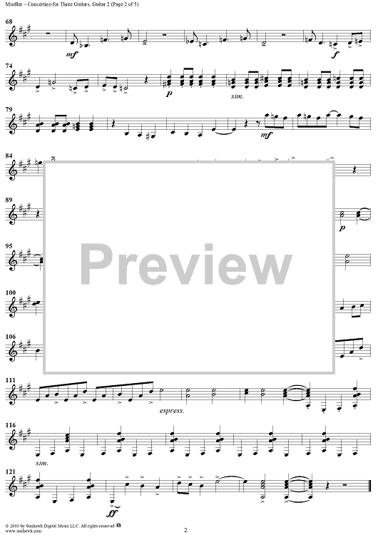 "Concertino for Three Guitars - Guitar 2" Sheet Music by Siegfried Mueller