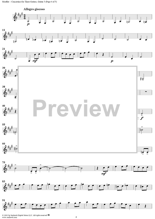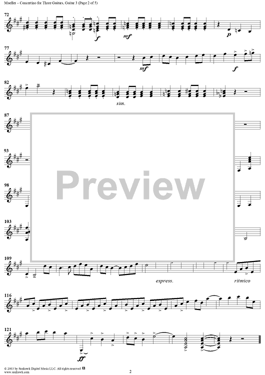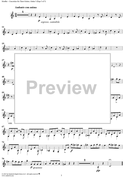 "Concertino for Three Guitars - Guitar 3" Sheet Music by Siegfried Mueller