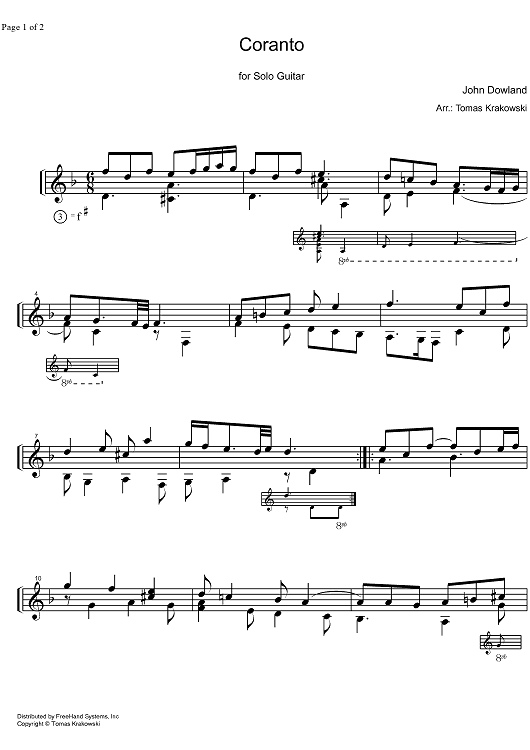 Digital Sheet Music for Coranto by , John Dowland, Tomas Krakowski scored for Guitar; id:327031