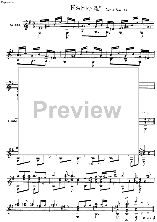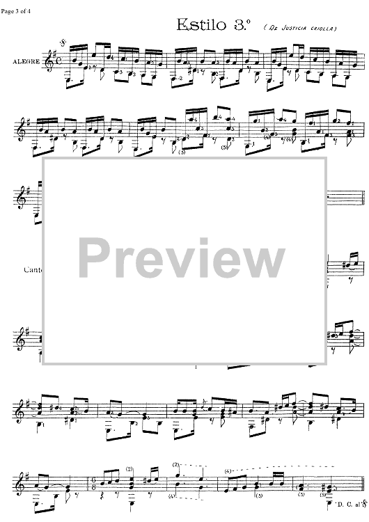 Digital Sheet Music for Cuatro Estilos Criollos by , Julio Sagreras scored for Guitar; id:327134