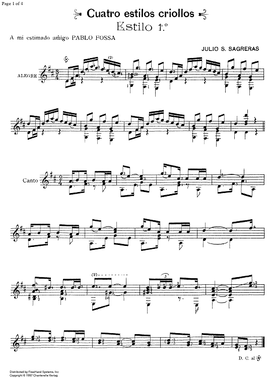 "Cuatro Estilos Criollos" Sheet Music by Julio Sagreras