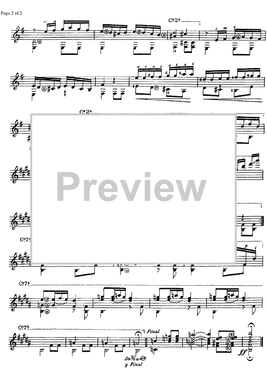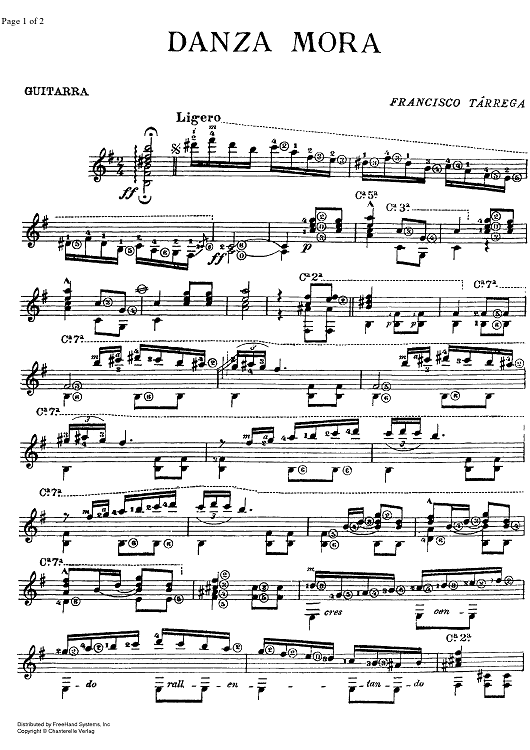 "Danza Mora" Sheet Music by F. Tarrega