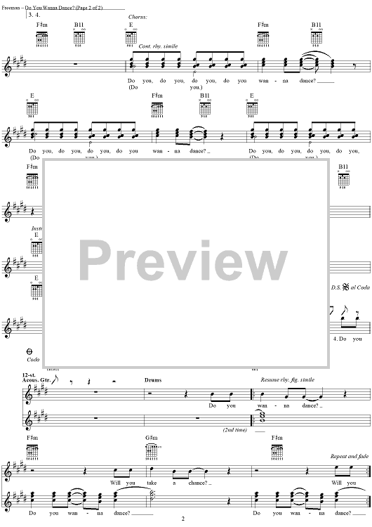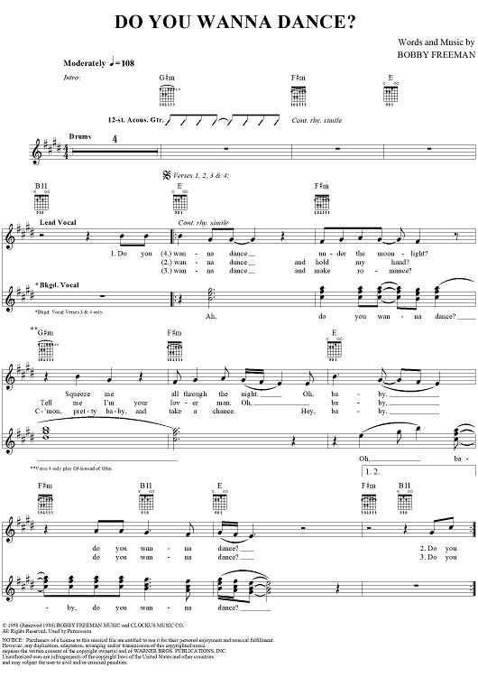 Digital Sheet Music for Do You Wanna Dance? by The Mamas and The Papas, Bobby Freeman scored for Guitar/Vocal; id:286882