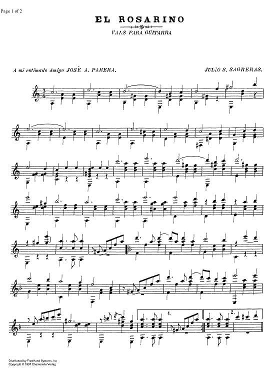 Digital Sheet Music for El Rosarino by Julio Sagreras scored for Guitar; id:327143