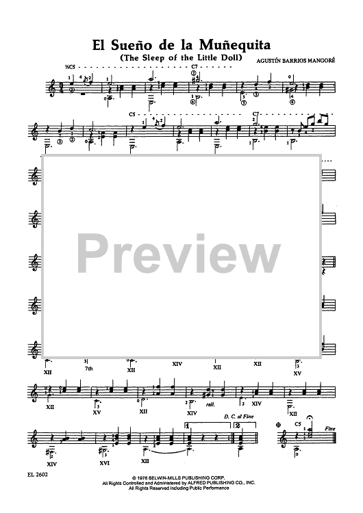 "El Sueño de la Muñequita (The Sleep of the Little Doll)" Sheet Music by Agustin Barrios Mangore