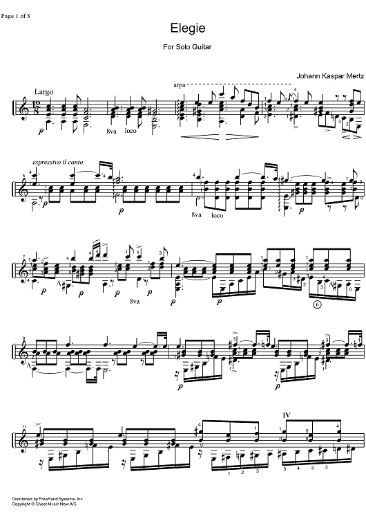 Digital Sheet Music for Elegie by Johann Kaspar Mertz scored for Guitar; id:322334