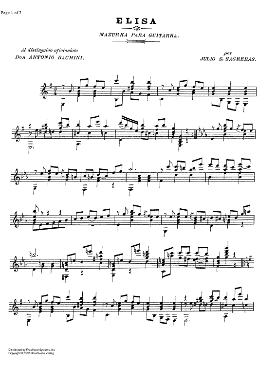 Digital Sheet Music for Elisa by Julio Sagreras scored for Guitar; id:327144