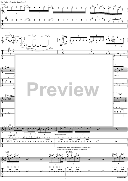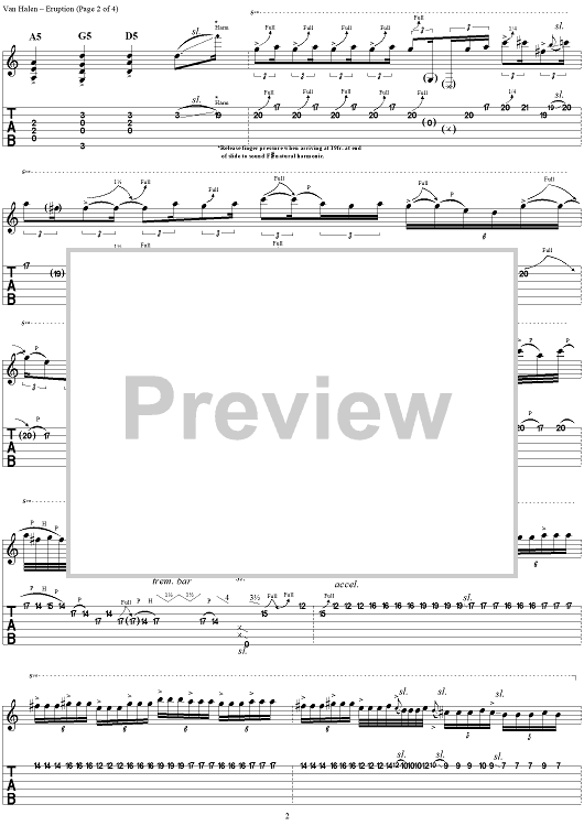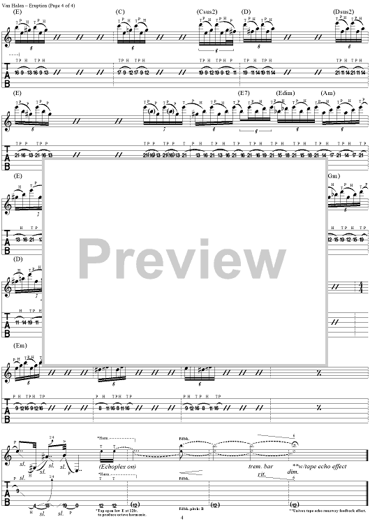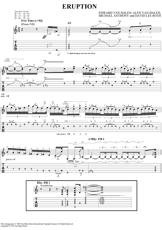 Digital Sheet Music for Eruption by Eddie Van Halen, David Lee Roth, Michael Anthony, Alex Van Halen, Van Halen scored for Guitar Tab; id:95548