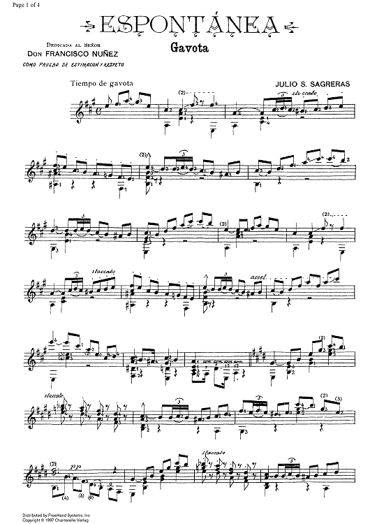Digital Sheet Music for Espontánea by , Julio Sagreras scored for Guitar; id:327145