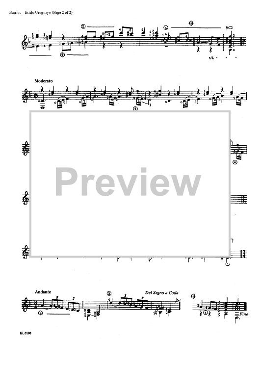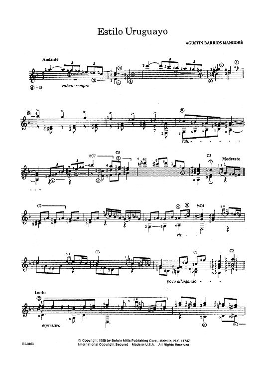 "Estilo Uruguayo" Sheet Music by Agustin Barrios Mangore
