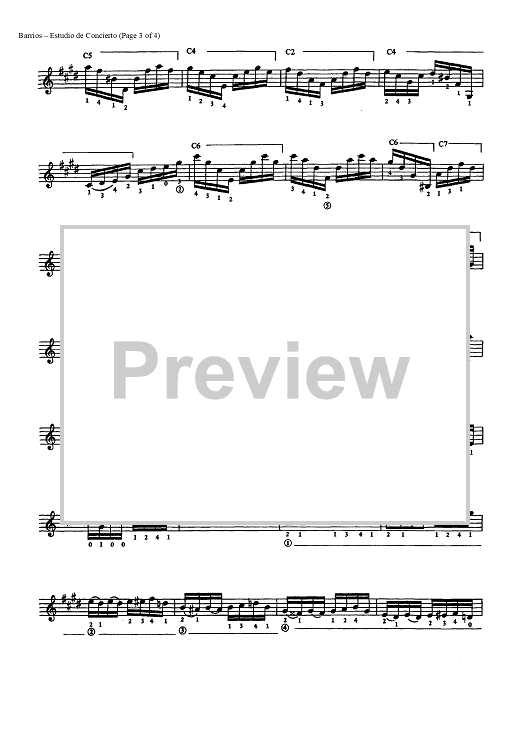 Digital Sheet Music for Estudio de Concierto (Concert Study) by Agustin Barrios Mangore scored for Guitar Solo; id:452217