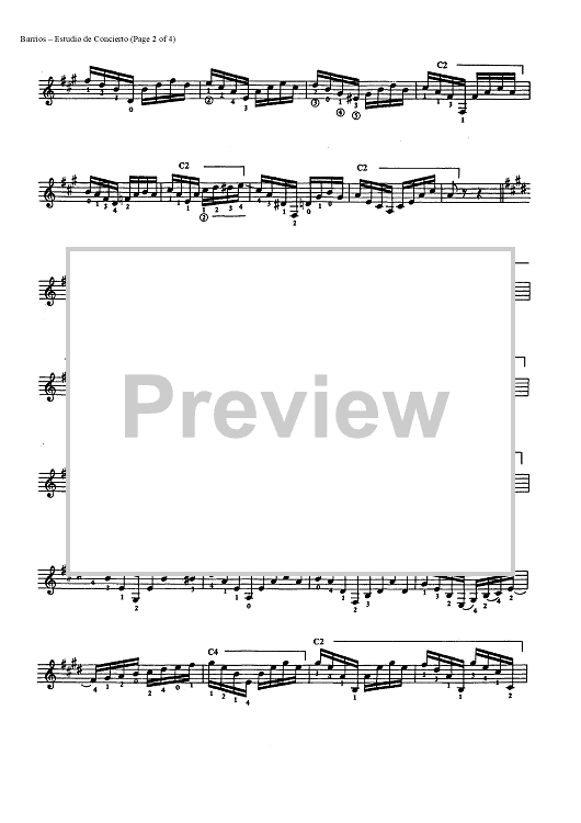 "Estudio de Concierto (Concert Study)" Sheet Music by Agustin Barrios Mangore