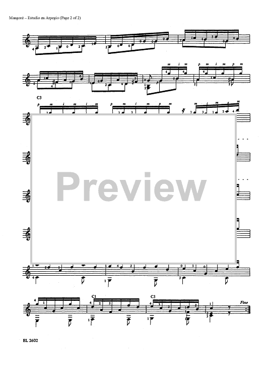 "Estudio en Arpegio (Arpeggio Study)" Sheet Music by Agustin Barrios Mangore