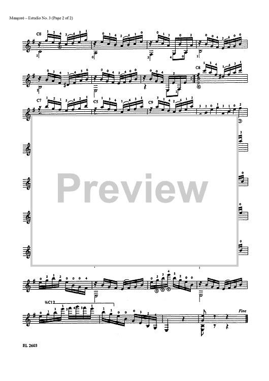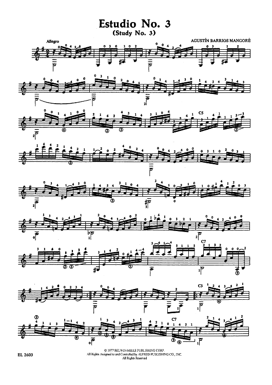 "Estudio No. 3 (Study No. 3)" Sheet Music by Agustin Barrios Mangore