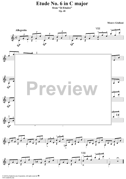 "Etude No. 6 in C major - From "24 Etudes" Op. 48" Sheet Music by Mauro Giuliani