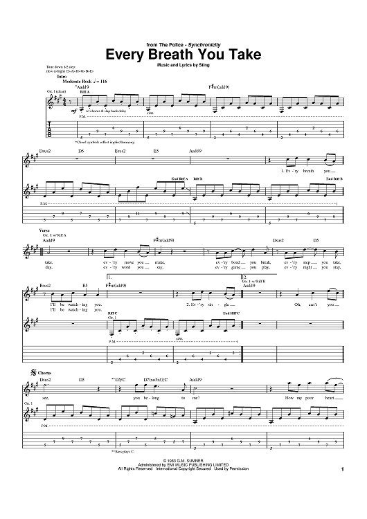 Digital Sheet Music for Every Breath You Take by Sting, The Police scored for Guitar Tab; id:368945