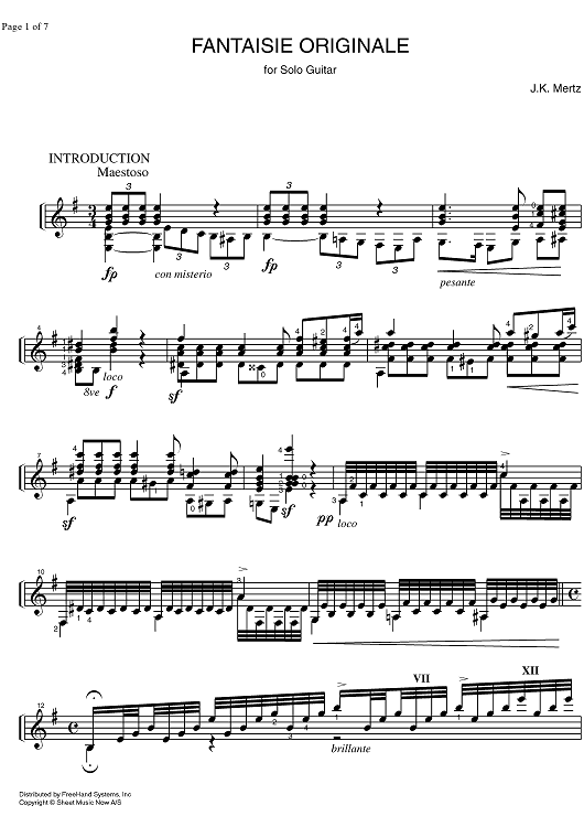 Digital Sheet Music for Fantaisie Originale by Johann Kaspar Mertz scored for Guitar; id:327321