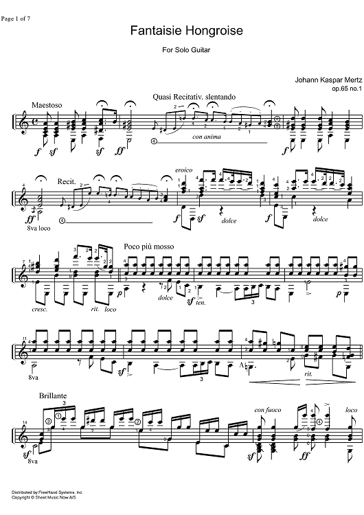 Digital Sheet Music for Fantasie Hongrois by Johann Kaspar Mertz scored for Guitar; id:322345