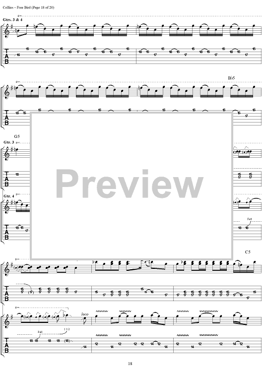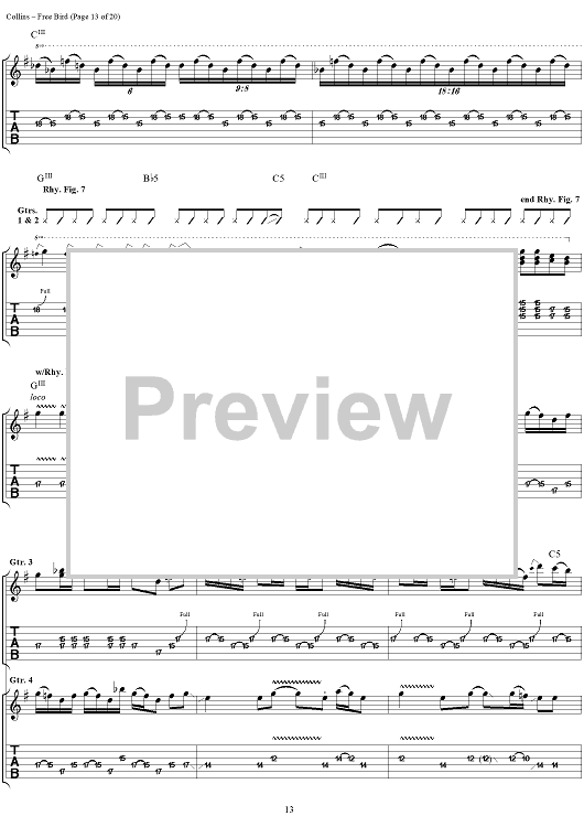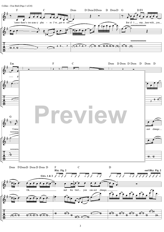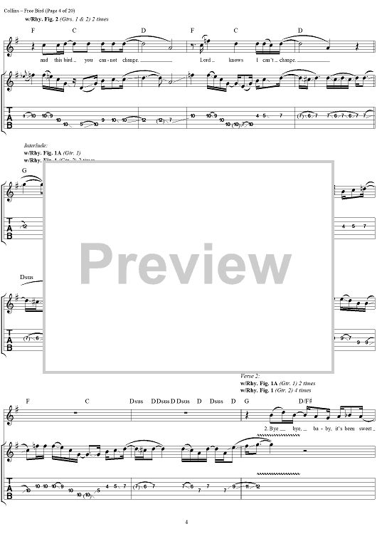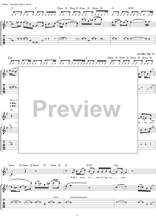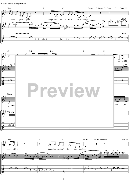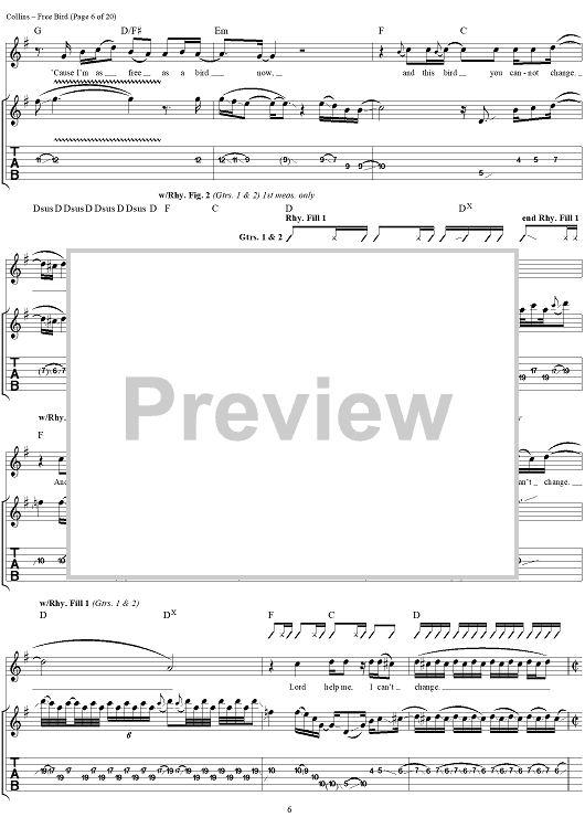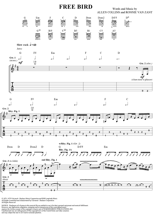 "Free Bird" Sheet Music by Lynyrd Skynyrd