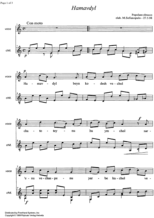 Digital Sheet Music for Hamavdyl by , Marco Sofianopulo, Traditional scored for Voice/Guitar; id:326528