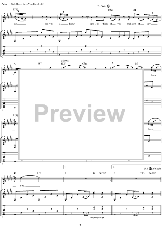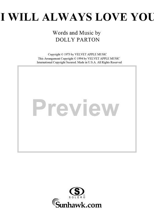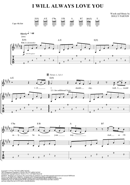 "I Will Always Love You" Sheet Music by Whitney Houston